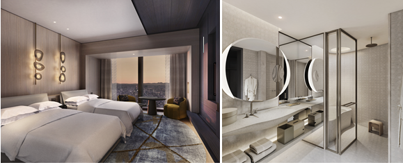 JWマリオット・ホテル東京は、贅沢な設えの客室およびスイートルームを擁し、総客室数は約200室の予定です。ホテル館内には、セミオープンキッチン、寿司バー、ライブクッキングステーション、ビュッフェカウンターを備えたオールデイダイニングをはじめ、幅広いダイニングオプションをご用意いたします。スペシャリティレストランでは、本格的なフレンチなど各国料理をお愉しみいただけます。また、当ホテルのロビーラウンジに併設されたクロワッサンバーでは、コーヒーや紅茶を飲みながらスイーツやセイボリーを味わうことができ、ゲストの皆様にくつろぎのひとときをお過ごしいただけます。広々としたエグゼクティブラウンジでは、ドリンクを片手にリラックスしたり、仕事を進めたりすることのできる快適な空間を提供いたします。