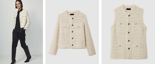 【COOHEM×ROPE】BASIC TWEED JACKET COLOR:ECRU PRICE: ¥51,700(税込)/ BASIC TWEED VEST(ベーシックツイードベスト)PRICE: ¥49,500(税込)