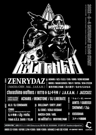 今回は渋谷Contactにて新たなワールドミュージックの指針として立ち上げた〈Crosspoint〉、〈Hoodish Recordings〉メイド・イン・ジャパンにこだわる〈Kumomi〉の3つの音楽レーベル協力の元、ジャンルの垣根を越えて変幻自在に唯一無二の音楽スタイルで人々を魅了しているZENRYDAZ (MACKA-CHIN、MaL、J.A.K.A.M.)が多彩なフィーチャリングアーティストと共に披露するレアなライヴを筆頭に、沖縄からはRITTO & DJ 4号棟とChurashima Brothersが参加。湘南からは2ndアルバムをリリースしたてのDIRTY JOINT、その他にも東京クラブシーン黎明期から活躍してきたJazzBrothersのDJ Yama a.k.a. Sahibや、DJ CONOMARK、IZANAI、YO.ANなど全国で活躍するDJ達が渋谷Contactにて一堂に集結!!