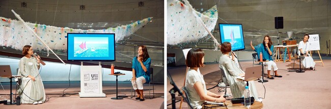 内野さんのお話をうけて司会の白石は「海と波長を合わせる方法(=チューニング)の1つは食べること」だと話しました。海は日本の食文化と直結しており、海を守ることは、日本人にとっては食文化を守ることにもつながるのだと。またディレクターの青木は、作ったものをみんなと共有する時間が自分のチューニングで、「この展示会場の中でも来てくださった皆さんと語り合う時間を作ることを意識していた」と話しました。