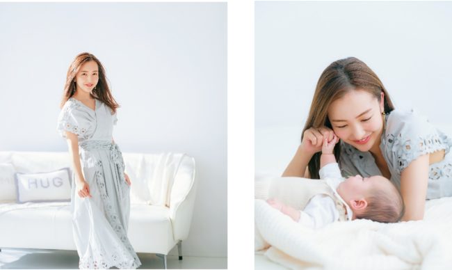2021年秋にご出産された板野さん。板野さんのお子さんより少しだけ月齢が上の読者モデルの赤ちゃんを抱っこして、「うちの子よりちょっと大きいかな、少し重いかな、あともう少しでこんなに首がすわるんだ」などと話しながら、慣れた様子で抱っこしてあやしてくださり、笑顔を引き出してくれました。