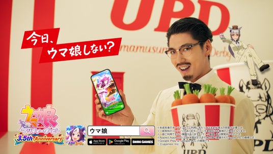 また、3.5周年を記念して、ゲーム『ウマ娘』と『ケンタッキーフライドチキン(以下、KFC)』とのコラボキャンペーンを開催中です。これにあわせて、本日よりカーネル・サンダースに扮した賀来賢人さんが登場する『ウマ娘』の新CMを放送開始しました。