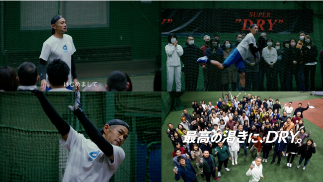 今回のWEBCMは、昨年実施した「スーパードライ 新・辛口〈生〉ご愛飲御礼キャンペーン」の当選者100名を招いて1月14日に撮影しました。イチローさんが真剣に野球の練習をする姿を見た参加者が「今より一歩前に進んでみよう」と思う様子を描いています。