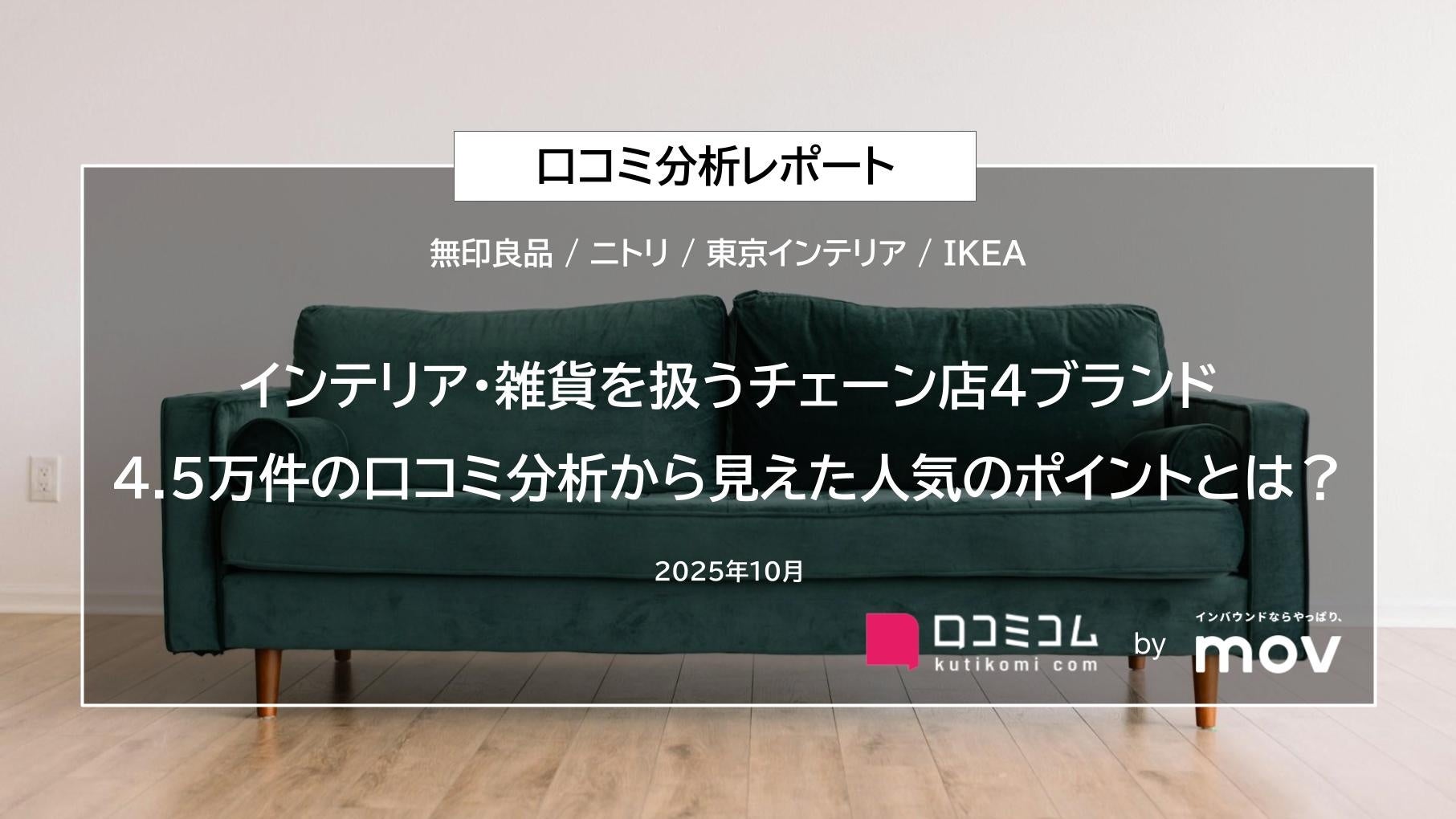 本調査は、インテリア・雑貨を扱うチェーン店4ブランドに寄せられた口コミ4万5,174件を対象に行いました。