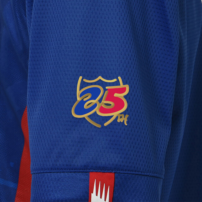25周年記念ユニフォームのコンセプトは、1999年Jリーグ加盟初年度のデザインを2023年シーズンのホームユニフォームをベースに、よりクラシックなテイストを表現したジャガードの新メッシュを採用し、軽量性、素材、機能ともにアップデートしました。クラブとともに歩んできた味の素スタジアムの空撮写真を透かしで表現し前面にデザイン。オーセンティックのみ胸に「You’ll Never Walk Alone」を昇華プリントしています。襟の形は2023年の2ndのユニフォームを踏襲。左袖にはFC東京25周年を祝して記念のロゴをデザイン。NBロゴをオーセンティックは刺繍で表現、レプリカは転写で表現しています。GK用ユニフォームは1999年をモチーフとしたオレンジカラーを採用。吸汗速乾機能のNB DRY(エヌビードライ)を採用しプレーヤーをさわやかでドライな状態に保ち、快適な着心地を実現しています。