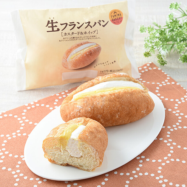 株式会社ファミリーマート(本社:東京都港区、代表取締役社長:細見研介)は、継続して取り組んでいる5つのキーワードの1つである「『あなた』のうれしい」の一環として、「FAMIMA BAKERY(ファミマベーカリー)」の新商品「生フランスパン(カスタード&ホイップ)」147円(税込158円)と「生フランスパン(明太子)」156円(税込168円)を2023年9月12日(火)から北海道と沖縄県を除く全国のファミリーマート約15,900店にて発売いたします。