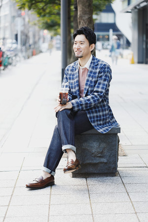ネイビーカラーをベースとした寒色系のマドラスチェックジャケットには、ピンクのラガーシャツを合わせて華やかさをプラス 。 ネイビージャケット感覚で羽織れるためトラッドスタイルを意識したラガーシャツ合わせはもちろん、オックスB.D.シャツとニットタイを選んだアイビー定番のスタイリングもおすすめです。 今回は敢えて足元にコインローファーを合わせて、品のある休日スタイルを演出しました。