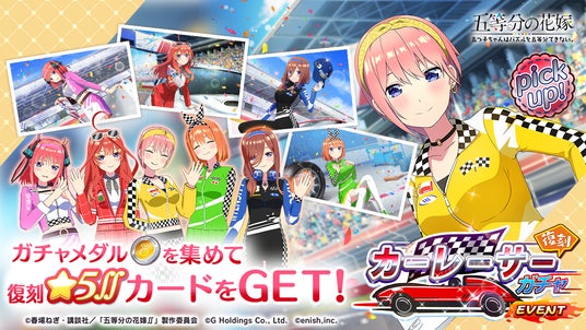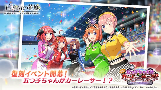 株式会社enish(本社:東京都港区、代表取締役社長:安徳 孝平、以下enish)は、2025年4月18日(金)より、アニメ「五等分の花嫁」初となるゲームアプリ『五等分の花嫁 五つ子ちゃんはパズルを五等分できない。』にて、週刊少年マガジン編集部完全監修のゲームオリジナルストーリーをお楽しみいただける復刻イベント「五つ子ちゃんはカーレーサー!?~超スピードであなたのもとへ~」を開催いたします。