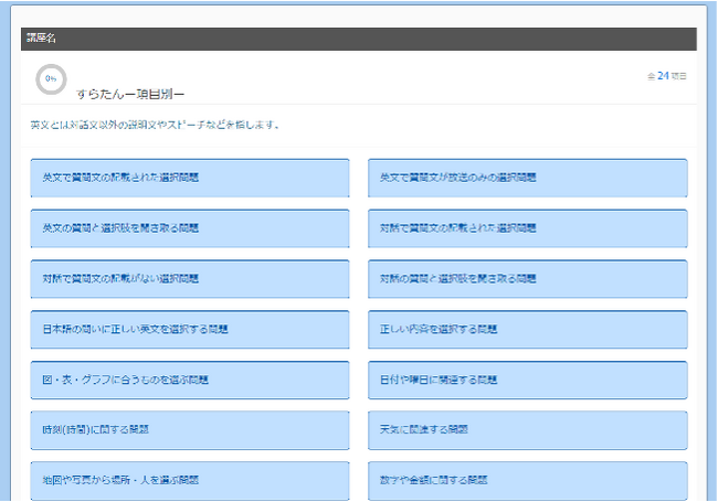 導入実績2000超を誇るeラーニング専門ソリューション企業、株式会社デジタル・ナレッジ(本社:東京都台東区、代表取締役社長:はが弘明)は、学習塾でのご利用に最適なデジタル教材「すらたん 高校入試リスニング」に全24項目の出題形式を追加リリースいたしました。苦手な項目を選んで集中して学習することができるため、効率的な学習を行うことができます。