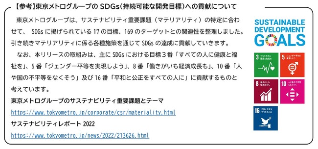 東京地下鉄株式会社(本社:東京都台東区、代表取締役社長:山村 明義、以下「東京メトロ」)は、当社グループの事業活動において影響を受けるすべての人々の人権を尊重すべく、「東京メトログループ人権方針」(以下、「本方針」という。)を定めました。