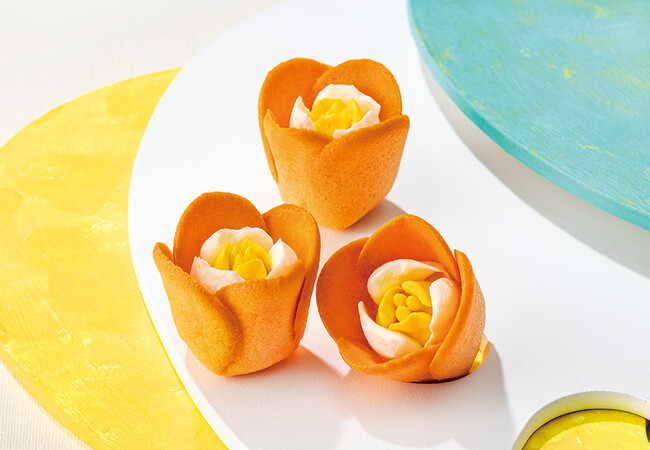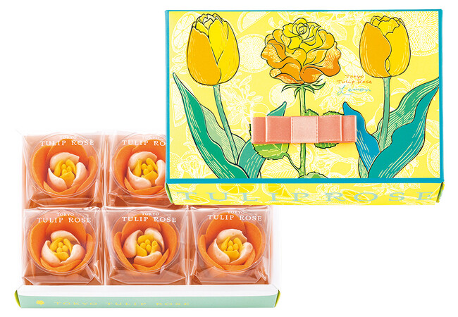 輝く太陽色のチューリップラングドシャに、レモンの搾りたての香りを秘めたショコラクリームローズを咲かせて。太陽をいっぱい浴びて育った 地中海レモンが香る『チューリップローズ レモン』は「ひとくちでさっぱり爽やか」がテーマの夏限定味です。