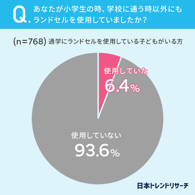 6.4%の方が「子どもの頃、学校に通う時以外にもランドセルを使用していた」と回答しています。