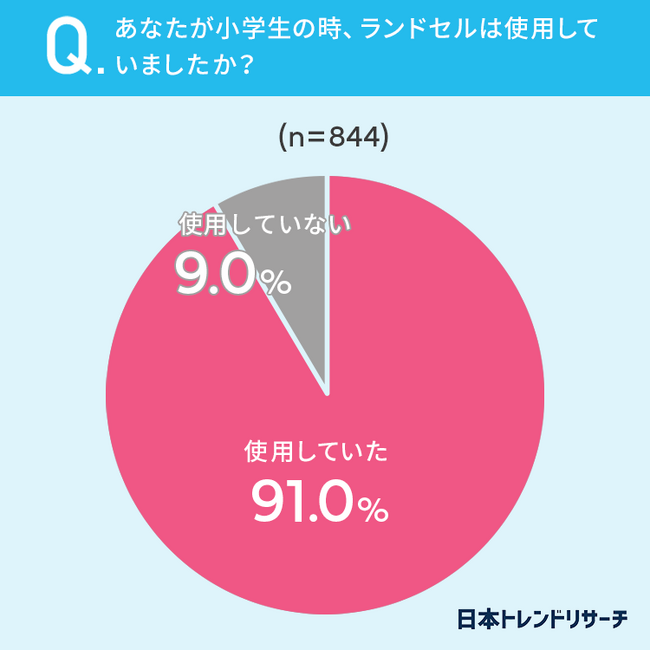 91%の方が「自分が子どもの頃、ランドセルを使用していた」と回答しています。