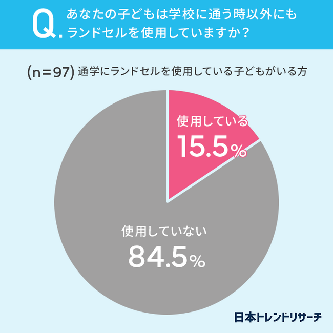 15.5%の方が「子供が学校に通う時以外にもランドセルを使用している」と回答しています。