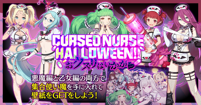 2023年10月11日(水)メンテナンス後より、ハロウィンイベント『CURSED NURSE HALLOWEEN!!~おクスリはいかが(ハート)~』を開始いたしました。