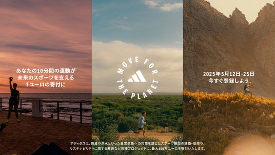 アディダス ジャパン株式会社(本社:東京都港区、代表取締役:萩尾 孝平)は、未来のスポーツ環境を支えるためのグローバルムーブメント「MOVE FOR THE PLANET(ムーブ・フォー・ザ・プラネット)」を、2025年5月12日(月)~25日(日)まで開催いたします。5月12日(月)の計測開始に先駆け、アースデイ(地球の日)である本日4月22日(火)より「アディダス ランニングアプリ」および「STRAVA」での事前登録が可能となります。