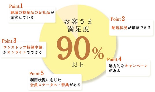 「さとふる」サイトユーザーを対象とした「さとふる」の満足度調査では、90%以上が「満足」「やや満足」と回答し、高い評価を受けました。