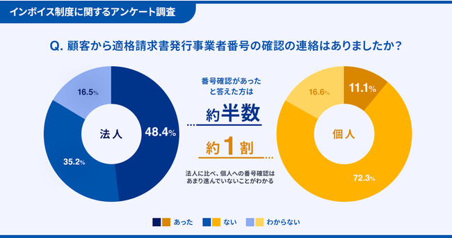 ・取引先からの事業者番号確認は、法人の約半数が「あった」、個人事業主は7割が「ない」