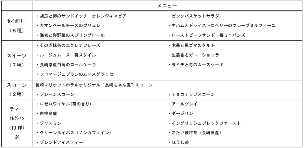 〔メニュー〕アフタヌーンティー/イブニングハイティー共通