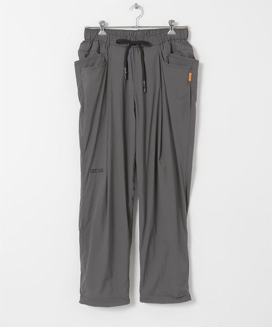 SEE SEE定番のビッグシルエットなカットソーに加え、超軽量・強撥水・ハイストレッチのナイロン生地を使用したセットアイテムやSEESEEオリジナルロゴ入りソックス、NEW ERAの名作「9TWENTY」を採用した刺繍ロゴキャップの全12型を展開。