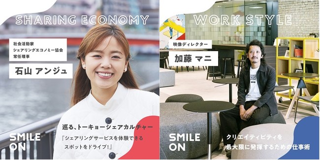 第一弾として、シェアリングエコノミー協会常任理事の石山アンジュさんをゲストに迎え、都内でシェアリングエコノミーを体験できるスポットをドライブする「巡る、トーキョーシェアカルチャー」や、シェアオフィス「クロスオフィス六本木」を舞台に映像ディレクターの加藤マニさんのワークスタイルについてお話をお聞きするインタビュー記事などを掲載しています。ぜひご覧ください。