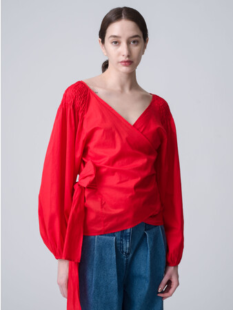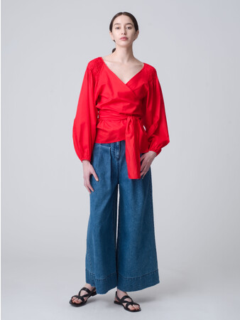 ファーストコレクションで登場した際に日本でとても人気が高かったカシュクールブラウスは、さらりとデニムに合わせたいデイリーユースな一枚。コロンとした袖のボリューム感が可愛らしく、鮮やかなポピーカラーが清々しい気分にさせてくれます。長らくコレクションに登場していなかったので何度もラブコールを送り、今回特別に復刻していただきました。