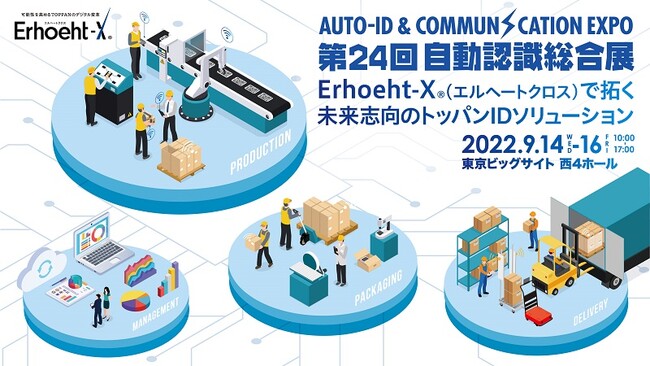 凸版印刷ブース(西4ホール、小間番号A-17)では、「Erhoeht-X(R)(エルヘートクロス)で拓く未来志向のトッパンIDソリューション」をテーマに、バリューチェーンのDXを「製造」と「物流」の2つの側面から展示、それぞれに最適なサービス・活用事例を紹介します。