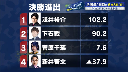 次回 決勝戦1日目は、6月8日(日)午後2:30からBS10で生放送いたします。
