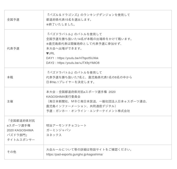 【URL】https://pad-esports.gungho.jp/kagoshima/