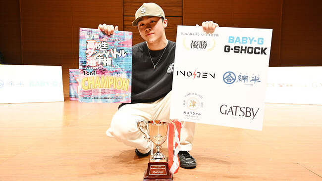 KENZO(DA PUMP)をはじめ、豪華ダンサーたちがJUDGEを務める中、3on3の決勝では激闘の末、 “一ツ葉高校”(一ツ葉高等学校)が “東1”(東京都立東高等学校)に勝利し、2代目3on3チャンピオンに輝きました。そして、1on1の決勝戦では、「第一生命 D.LEAGUE」にて、Dリーガーとしても活躍中、CyberAgent Legit(サイバーエージェントレジット)に所属するKANATO(POPPING/福岡)がAYU(BREAKING/愛知)に勝利し、見事、第7代チャンピオンの栄冠を掴みました!KANATOは“一ツ葉高校”としても3on3で優勝したため、大会初となる2部門での優勝、二冠を達成しました!
