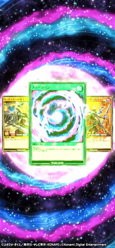 「遊戯王ゴーラッシュ!!」ワールドの開放に合わせて、TVアニメシリーズの7作目となる「遊戯王SEVENS」から登場した召喚方法「フュージョン召喚」がついに実装されました。より戦略性の高いデッキ構築が可能に!