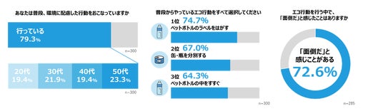 一方で、エコ行動を行う中で「面倒だ」と感じたことがある人は7割以上となり、環境意識の高さと実践時の負担感にギャップがあることが明らかになりました。