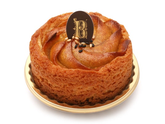 発酵バターの風味が広がる濃厚なキャラメル生地に、甘酸っぱい林檎のコンフィチュールを合わせました。さくさくのシュトロイゼルを飾って。