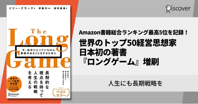 株式会社ディスカヴァー・トゥエンティワン(本社:東京都千代田区、取締役社長:谷口奈緒美)は2023年1月16日に『ロングゲーム』(ドリー・クラーク 著、伊藤守 監修、桜田直美 訳)を増刷します。