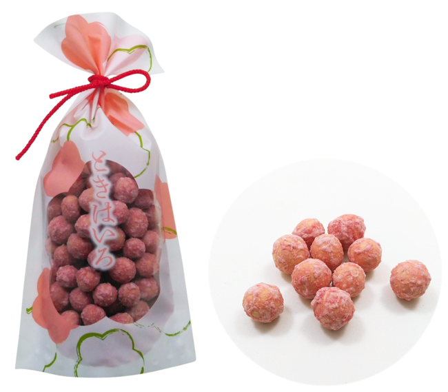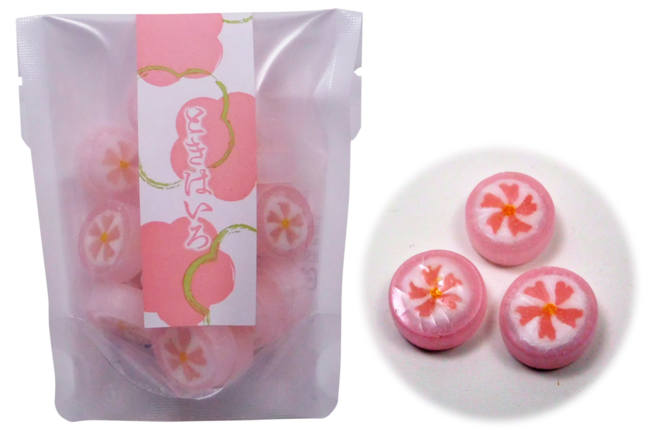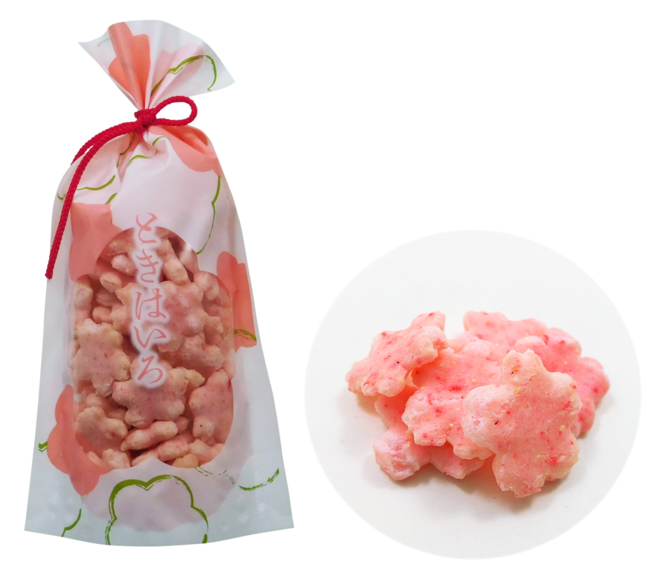 春の訪れを感じさせる桜のパッケージ。あられや飴など8種類をラインナップ。
