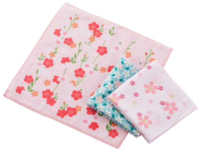 やわらかいガーゼと吸水性の良いパイルの二重織。枝垂れ桜や愛し桜など新柄も。