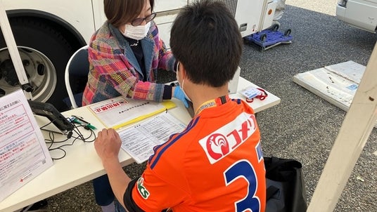 ※試合会場には、献血バスを2台配車いたします。献血WEBサービス「ラブラッド」等で事前に予約いただいた方から、順にご案内します。当日、ご予約がない方の受付も可能ですが、受付混雑時は待ち時間が長くなる可能性がございます。