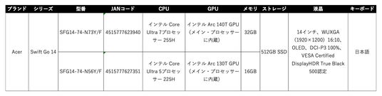 日本エイサー株式会社(本社:東京都新宿区、代表取締役社長:ボブ・セン)は、2025 年モデルのAIノートパソコン「Swift Go 14」より、インテルCore Ultra 7プロセッサー 255Hを搭載した「SFG14-74-N73Y/F」と、インテルCore Ultra 5プロセッサー 225を搭載した「SFG14-74-N56Y/F」を、本日6月18日より、ヨドバシカメラ、ビックカメラグループECサイト、並びにAcer公式オンラインストアより順次発売いたします。両モデルには、Microsoft Office Home & Business 2024(個人向け、デジタルアタッチ版)が搭載されています。