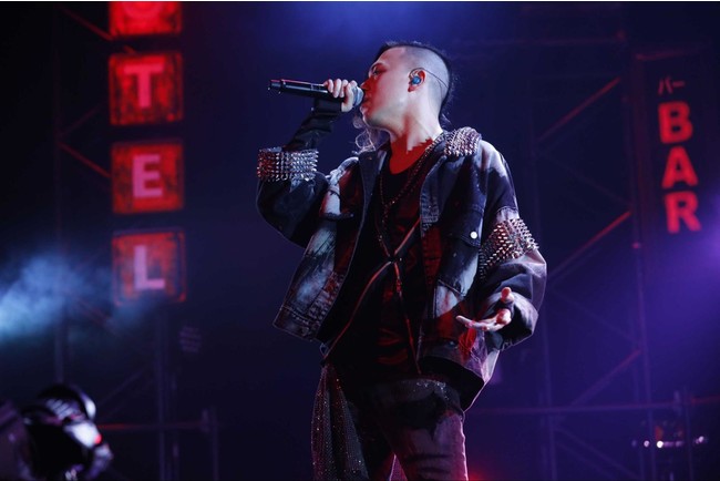 空間を切り裂くように響く重厚なベースの音で晶のシンガー・小林が西部劇に描かれる時代を力強く歌う「Kiss or Bullet」で、その歌声を轟かせる。荒々しいけれど艶のある歌声が小林太郎“此処に在り”とばかりに会場を席捲し、その背をさらに押し出すように理土、Shumei、TORA、SHIMaが全身全霊のアグレッシヴなダンスで客席を煽る。