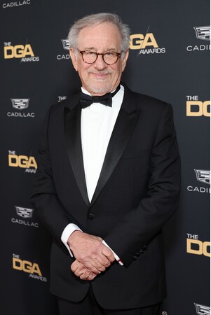 2月18日にロサンゼルスで開催された、第75回全米監督組合賞の授賞式に出席したスティーヴン・スピルバーグ。キム・ジョーンズによるディオールのメンズコレクションより、ブラックウールのピークドラペルタキシードにウィングチップカラーのホワイトコットンシャツとブラックシルクのボウタイを合わせた装いで登場しました。