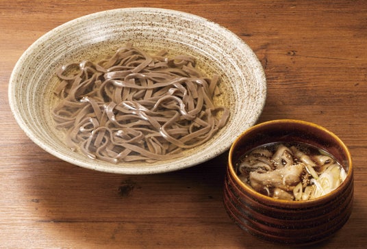 - 山芋を練りこんだ中太の平打ちそば