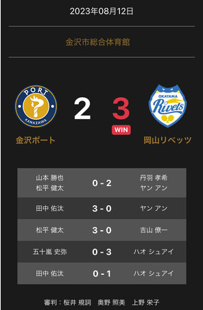 2023-08-13 一般社団法人Tリーグ ノジマTリーグ 2023-2024シーズン 公式戦 8月12日開催 金沢ポート vs 岡山リベッツ 試合結果 Tweet 今シーズンより新規参入となる金沢ポートのホーム開幕戦は、逆転で岡山リベッツが勝利しました。 企業プレスリリース詳細へ PR TIMESトップへ 公式ツイッター Follow @Straightpress 最新情報をTwitterで受け取ろう! 公式フェイスブックページ 最新情報をFacebookで受け取ろう! 前の記事 一覧へ戻る 次の記事