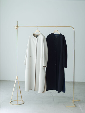 例年よりもやや軽くアップデートされたバイカラーカシミアリバーや、上質なピュアウールを使用したイタリア素材のニードルチェック、ウールビーバーなど全10シリーズ19型のコートがラインナップ。