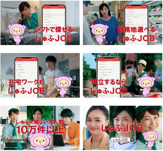 今回のCMでは、「短時間で働きたい」「家近がいいな」「家族の時間を増やしたい」「家で仕事がしたい」「私にできるかな」と悩むしゅふたちに、公式キャラクターのブーコ部長が『しゅふJOB』を提案。10万件以上の求人から、希望に合った求人を見つけて、生き生きと働き始める様子が描かれています。