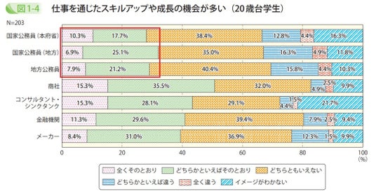 一方で、人事院が2025年に実施した「国家公務員イメージ調査」によれば、20代学生の中では、国家公務員(特に本府省)の「やりがい」や「成長機会」に対する肯定的イメージが他業界と比較して低いという結果が明らかになりました。制度改革や働きやすさ向上の取り組みが進む一方、その価値が若年層に十分に届いていないという“認知ギャップ”が存在しています。