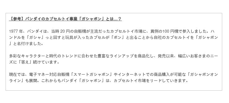 バンダイナムコアミューズメントが、店舗運営ノウハウの共有やサポート、BNAAが直営店舗の運営や商品購入を担当し、日本国内で展開するバンダイのカプセルトイ「ガシャポン」を通してアメリカでの市場開拓を目指します。