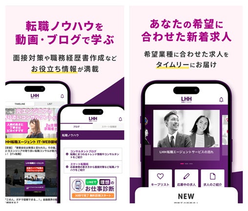 人財サービスのグローバルリーダーであるAdecco Groupの日本法人で、総合人事・人財サービスを展開するアデコ株式会社(本社:東京都千代田区、代表取締役社長:平野 健二)の人財紹介・転職支援事業ブランドであるLHH転職エージェント(責任者:板倉 啓一郎、以下「LHH」)は、この度、iPhoneおよびAndroid向けの公式アプリを全面リニューアルしました。リニューアルにともない、転職活動の成功に向けたさらなる支援のため、様々な新機能を追加するとともに、より使いやすくなるようユーザーインターフェースを刷新しました。