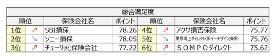 今年も総合満足度上位は、ダイレクト系損保が占める結果となりました。