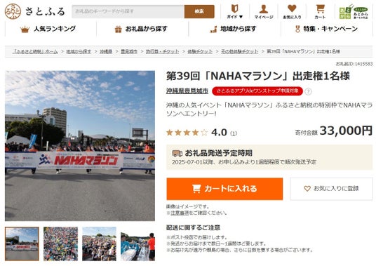 第39回「NAHAマラソン」出走権1名様お礼品ページは、こちらからもご確認いただけます