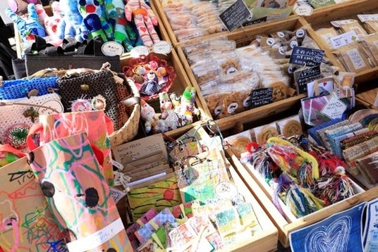 渋谷区の障がい者支援事業所とデザインを学ぶ学生が共創して生まれたフォントやパターンアートを用いた商品を販売しました。グラフィカルなTシャツやバッグ、人気のぬいぐるみ「らぶらび」などがブースに並び、デザイン性の高さから多くの方が足を止め、商品を購入していました。来場者が商品を購入することが、障がいのある人の経済的自立支援に繋がる仕組みです。福祉とデザイン、商業を結びつけ、新たな価値を生み出すサステナブルな取り組みのモデルを示しました。